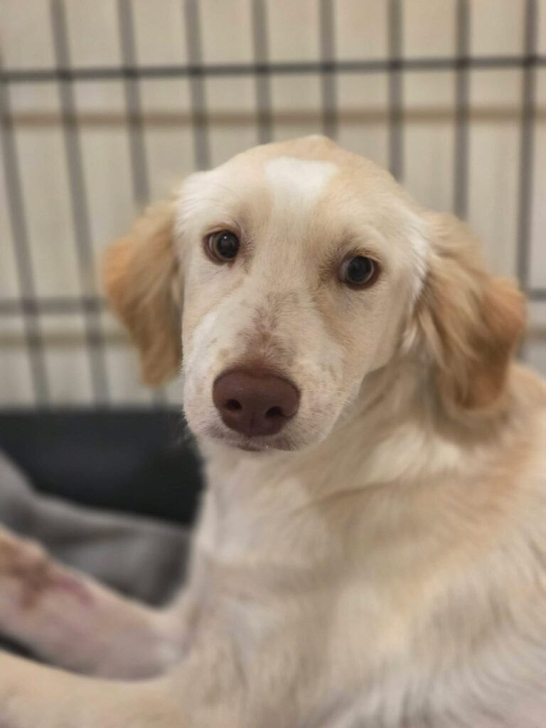 Nadia is looking for a calm home that understands shy puppies need time. She’ll thrive with someone who uses gentle encouragement, a consistent routine, and positive training to help her build confidence. She would do best with people who won’t rush her, but who will celebrate her progress and make her feel protected as she learns.